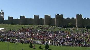 Entre los asistentes se encontraban los abulenses llegados de distintos puntos de la provincia y de las parroquias y cofradías de la ciudad, que se han unido a los peregrinos residentes en la ciudad durante las últimas jornadas --en torno a 5.000--, que iban ataviados con las banderas de sus países, entre las predominaban las de Francia.