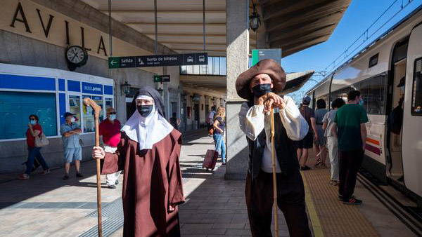 Pero este año el viaje es distinto. Lo normal hubiera sido que La Santa hubiera acompañado a los viajeros durante su viaje desde Madrid en el vagón. Departiendo con ellos y haciendo que las casi dos horas que dura el trayecto se les pasaran volando. Pero la crisis del coronavirus ha afectado también a esta curiosa forma de acercarse a la ciudad de Ávila: la necesidad de respetar las distancias y el control de aforo en los vagones ha motivado este cambio.