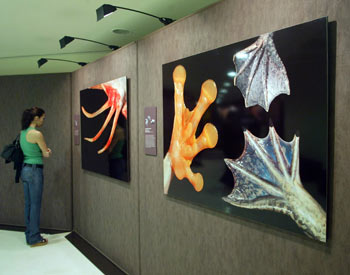 Adherentes, con uñas, ganchos, rojas, peludas, con uno o cinco dedos, con huellas, capaces de avanzar por el filo de una cuchilla sin cortarse o por un vidrio al revés sin caerse son algunas de las 26 singulares patas que ilustran la huella evolutiva en la muestra que acoge el Museo de la Ciencia de Valladolid.