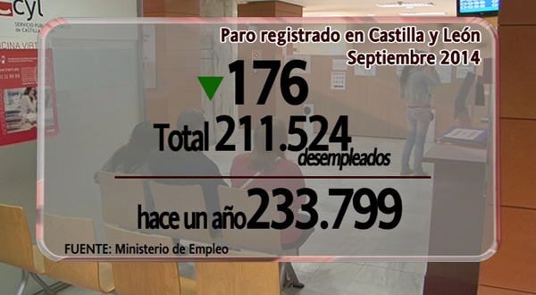 El número de parados inscritos en las oficinas de Empleo de Castilla y León bajó en septiembre en 176 personas, con lo que la cifra de desempleados en la Comunidad baja hasta los 211.524 (97.149 hombres y 114.375 mujeres), según los datos del Ministerio de Empleo y Seguridad Social.