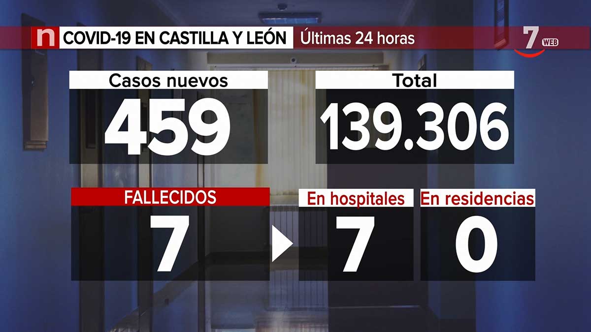 Castilla y León contabiliza un total de 139.306 positivos por coronavirus, de ellos 459 nuevos, junto con 7 nuevas víctimas mortales en hospitales y un total de 19.778 altas hospitalarias, de ellas 16 nuevas, según los datos ofrecidos por la Consejería de Sanidad.
