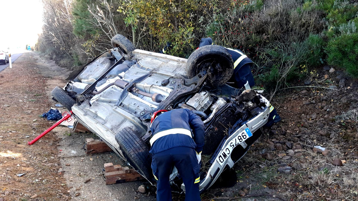Dos personas resultaron heridas este mediodía en un accidente de tráfico registrado en el kilómetro 68 de la A-231, a la altura de la localidad palentina de Cervatos de la Cueza. El siniestro, según informaron fuentes del Centro de Emergencias 1-1-2 Castilla y León, tuvo lugar minutos antes de las 12.30 horas cuando se recibieron varias llamadas en las que se alertaba del vuelco de un turismo y en las que se indicaba que los dos ocupantes del vehículo, un varón y una mujer, que estaba conscientes, no podían abandonar el turismo por su propio pie.