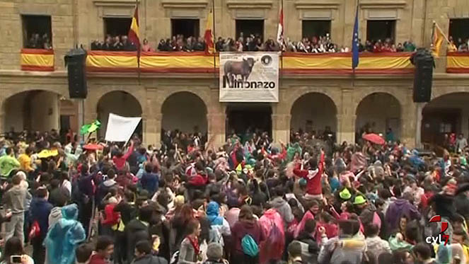 Huerga Valbuena mostró desde el balcón del Ayuntamiento mucha soltura a la hora de dirigirse a los jóvenes que se encontraban en la Plaza Mayor, esperando la concesión del astado que recorrerá las calles de Benavente el próximo 25 de mayo, 50 días después de La Veguilla, como mandan los cánones.