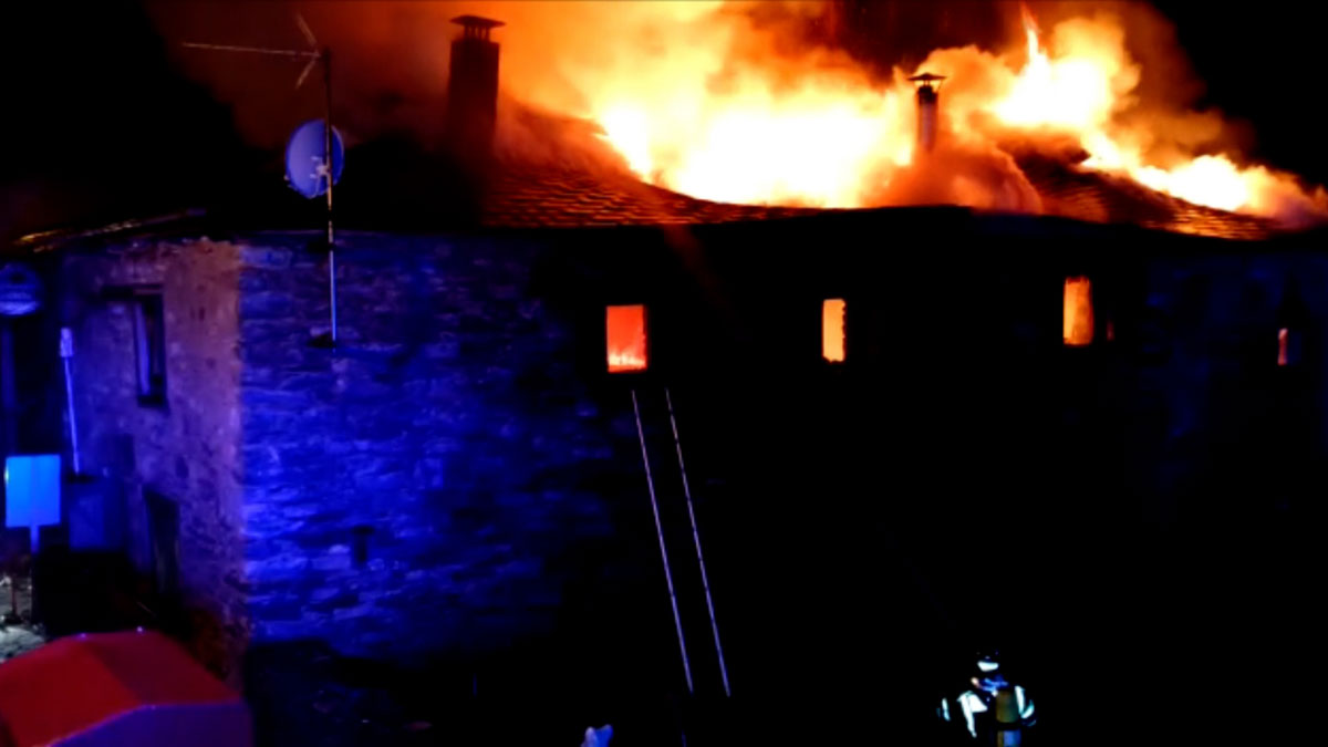 Hasta el lugar se desplazaron cuatro bomberos de Ponferrada con dos autobombas y a su llegada se encontraron con el incendio totalmente desarrollado, afectando a todo el bajo cubierta, gran parte del cual ya había colapsado, y la primera planta del inmueble.