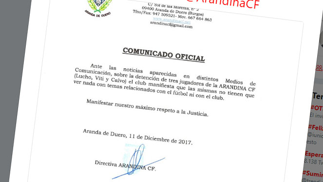 Los tres futbolistas han pasado la noche en la Comisaría de la Policía Nacional de Aranda de Duero y se prevé que este martes pasen a disposición judicial.