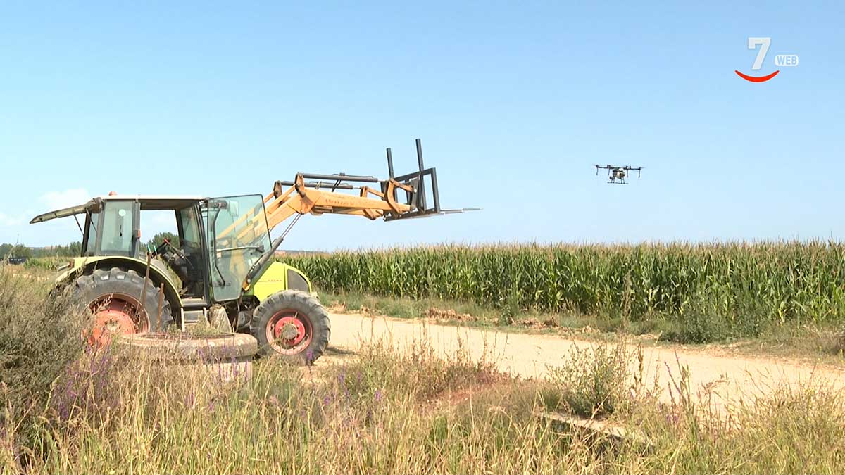 Utilizar un dron supone muchas ventajas para los agricultores, que han encontrado una herramienta que abre un prometedor futuro por delante a la hora de asegurar la calidad de producciones, como la de maíz. César Pan es un agricultor leonés y explica las ventajas de fumigar desde el aire: "A un campo de maíz, a partir del mes de julio, ya no se puede entrar con ningún tipo de máquina, si no es con máquinas muy caras que en estas fincas tan pequeñas no compensan. Sin embargo, con el dron, podemos entrar en todos los estadios del cultivo".