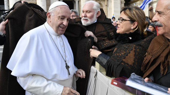 La Capa Parda de Zamora llega hasta El Vaticano. El Papa Francisco ha recibido esta capa de honras de la comarca de Aliste. No sólo la ha aceptado si no que ha accedido a colocársela sobre los hombros, algo poco usual.