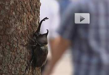 En Japón, el verano es la temporada de los insectos. Y uno de los favoritos es el escarabajo rinoceronte, que puede llegar a medir más de cinco centímetros. Allí, la lucha entre los escarabajos de un cuerno, rinocerontes marrones, es considerado casi un deporte. El combate consiste en ponerlos encima de un tronco y dejar que se empujen, gana el que consiga tirar al otro al suelo.