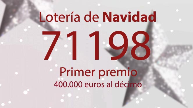 El número 71.198 ha resultado agraciado con el Gordo, el primer premios del Sorteo Extraordinario de Lotería de Navidad, dotado con 4.000.000 euros a la serie. Ha recaído en administraciones de Lugo, Málaga, Huesca, Jaen, Lleida (Sort), Madrid, Cantabria, Cádiz, Las Palmas, Murcia, Santa Cruz de Tenerife y Valencia.