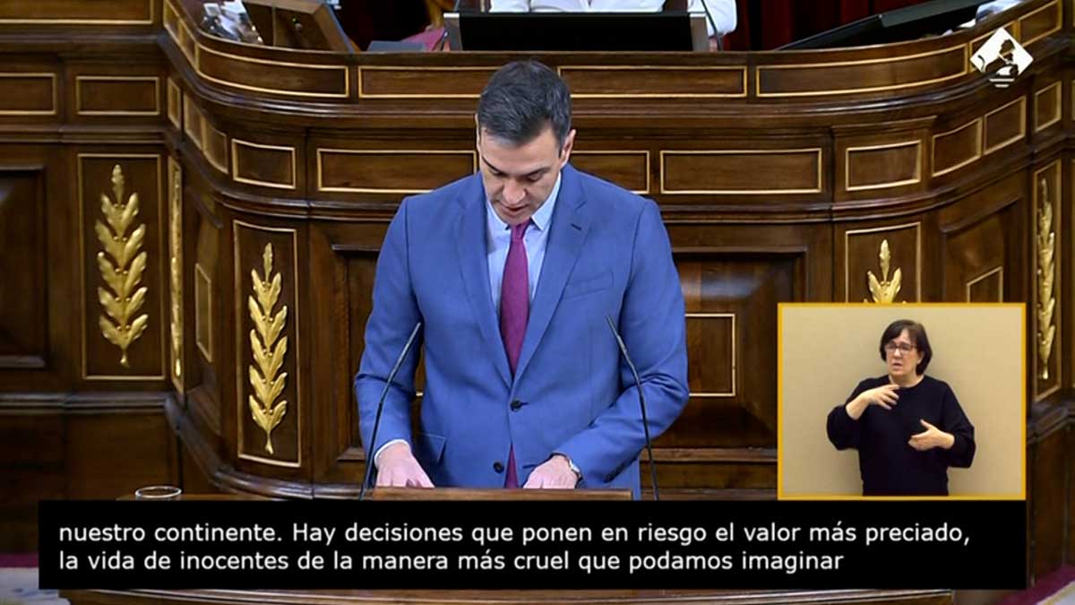 Sánchez ha acudido al Pleno monográfico sobre la guerra de Ucrania en el Congreso con el anuncio de que había cambiado de opinión y de que, en contra de lo que había anunciado hace dos días, España finalmente sí apoyará con armas a la resistencia ucraniana.