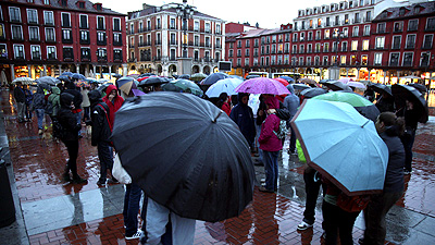En el caso de Valladolid, y a pesar de la que manifestación no fue autorizada por la Subdelegación del Gobierno, fueron unas 400 las personas las que se concentraron bajo una intensa lluvia en la plaza Mayor. Allí, los convocantes repartieron octavillas en las que se pedía la disolución de las Cortes; la dimisión del Gobierno, por incumplimiento del programa electoral; una nueva Constitución redactada de “manera democrática con la participación de toda la ciudadanía” y la reforma de la Ley Electoral. Después, tras la lectura de un manifiesto, se abrió un turno de palabra para los convocantes.