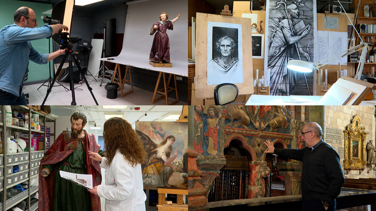 Los expertos del CCRVCS tratan de devolver a su estado original tres esculturas obra de Gregorio Fernández. Tecnología y trabajos tradicionales se mezclan en un meticuloso proceso. Desde la toma de muestras y su paso por el laboratorio para descubrir su composición, hasta la fotografía en infrarrojos o radiografías. Todos los medios volcados en recuperar el esplendor de una Sagrada Familia obra de Gregorio Fernández. Además de los medios más modernos, también el trabajo de ebanistas y pintores es necesario para alcanzar el éxito.
