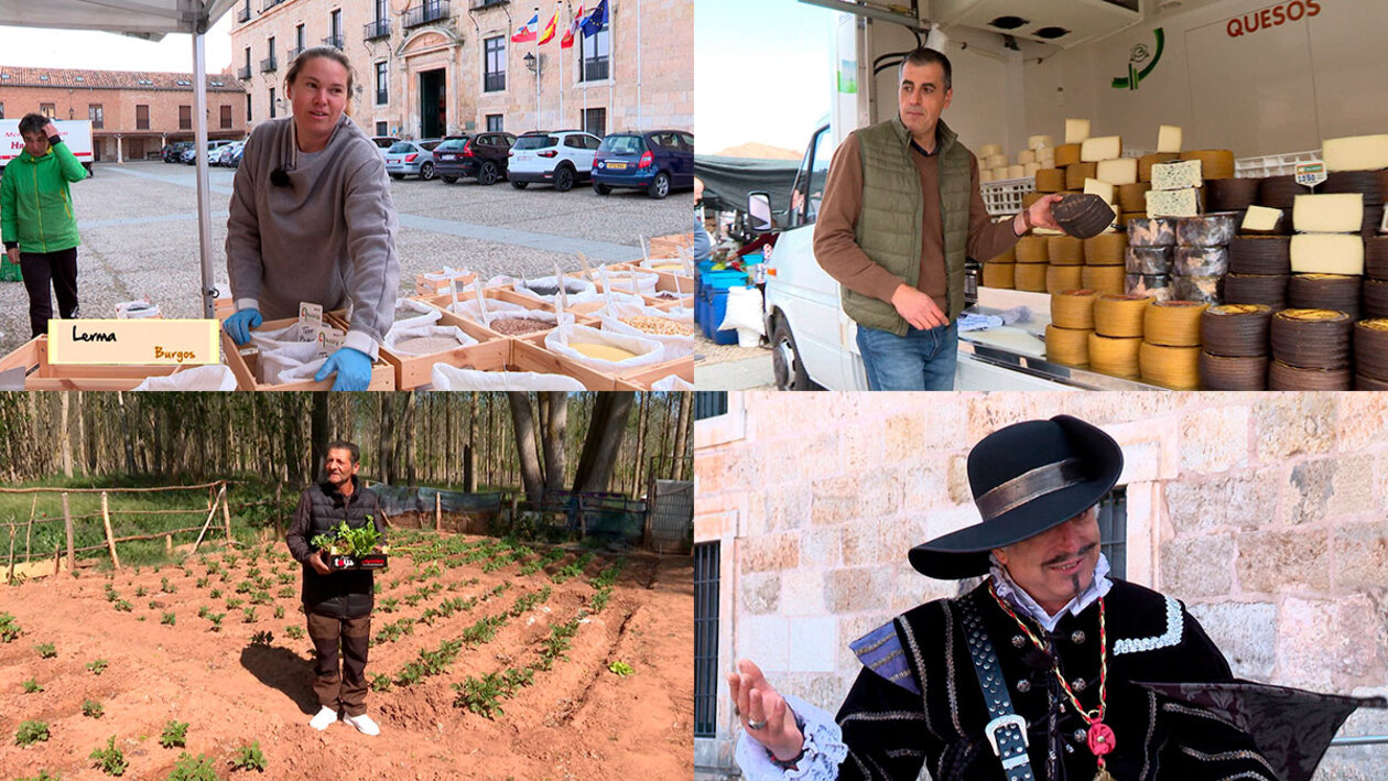 El mercado semanal de Lerma no podía tener mejor escenario que su histórica plaza. Allí se coloca Valentín con sus quesos, Reyes con sus calcetines y Laura con sus exóticas legumbres. Y allí interpreta muchas de sus obras, Luismi, un conocido actor local especializado en personajes históricos, como los que creó José Zorrilla en la época que pasó en la villa. En la misma plaza hace parada también el taxi de Luna, una joven que da servicio de transporte a la demanda a los vecinos de otras localidades, como Aurora y sus vecinas.