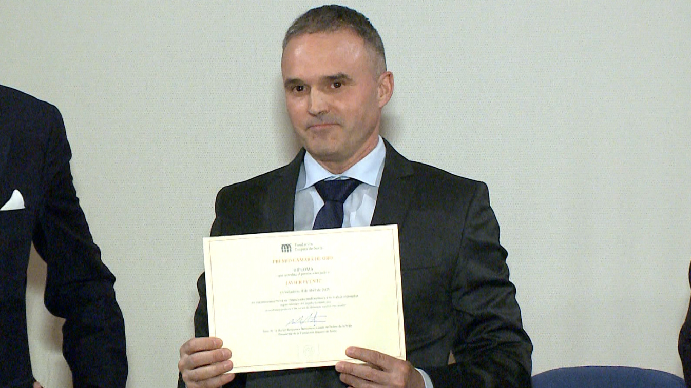 La Fundación Duques de Soria de Ciencia y Cultura Hispánica ha otorgado al realizador de CyLTV Javier Puente el Premio ‘Cámara de Oro de Castilla y León’ 2025. Rafael Benjumea, presidente de la Fundación Duques de Soria, le ha entregado el galardón en un acto celebrado este miércoles en la Facultad de Filosofía y Letras de la Universidad de Valladolid. Este reconocimiento tiene como objetivo poner en relieve la labor oculta de una profesión indispensable en el desempeño del periodismo audiovisual.