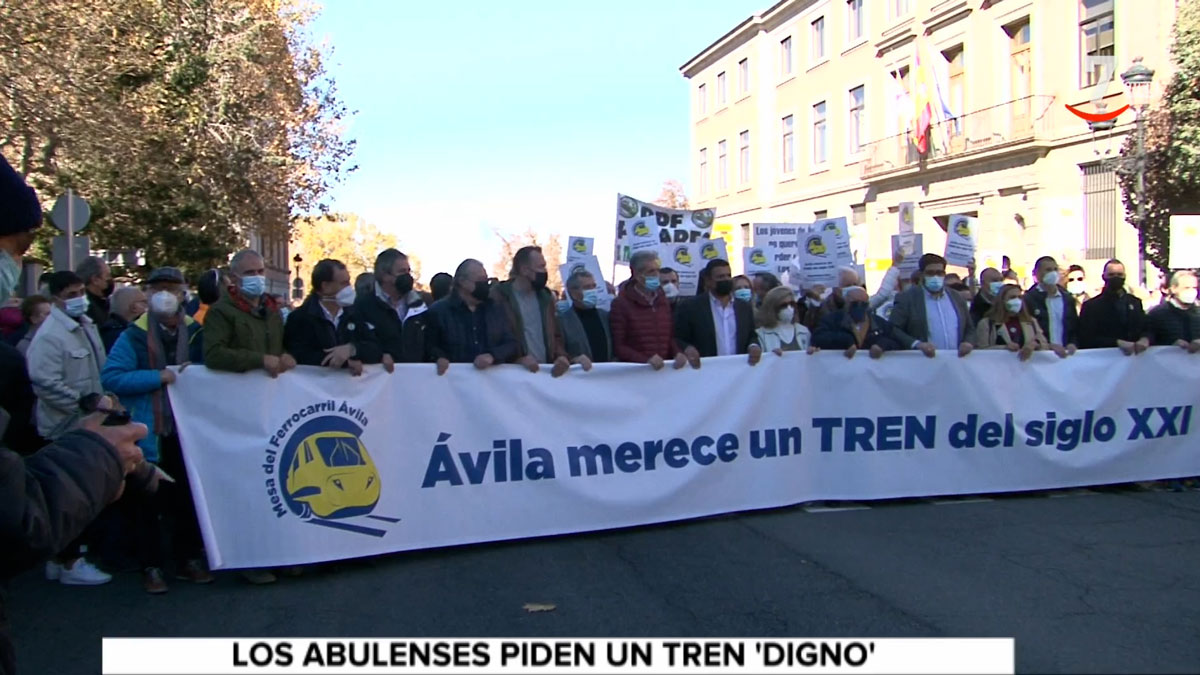 Unas 4.000 personas, según los organizadores y la Policía Local, se congregaron este domingo en Ávila para exigir al Gobierno, pero también a las entidades responsables del servicio ferroviario (Renfe y Adif) "un tren del siglo XXI", como rezaba la pancarta de la cabecera.