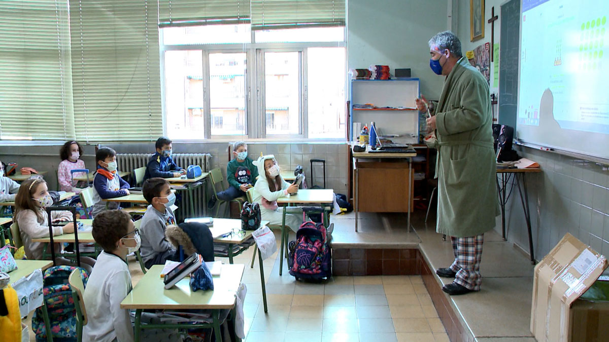 No nos hemos colado en sus casas a la hora del desayuno. Son clases de matemáticas, inglés o religión en las que este viernes atienden minions, unicornios, incluso ya algún Papá Noel. Los más de 900 alumnos de este colegio de Valladolid han venido en pijama. La iniciativa surgió de Alba Orihuela, su familia es casa de acogida.