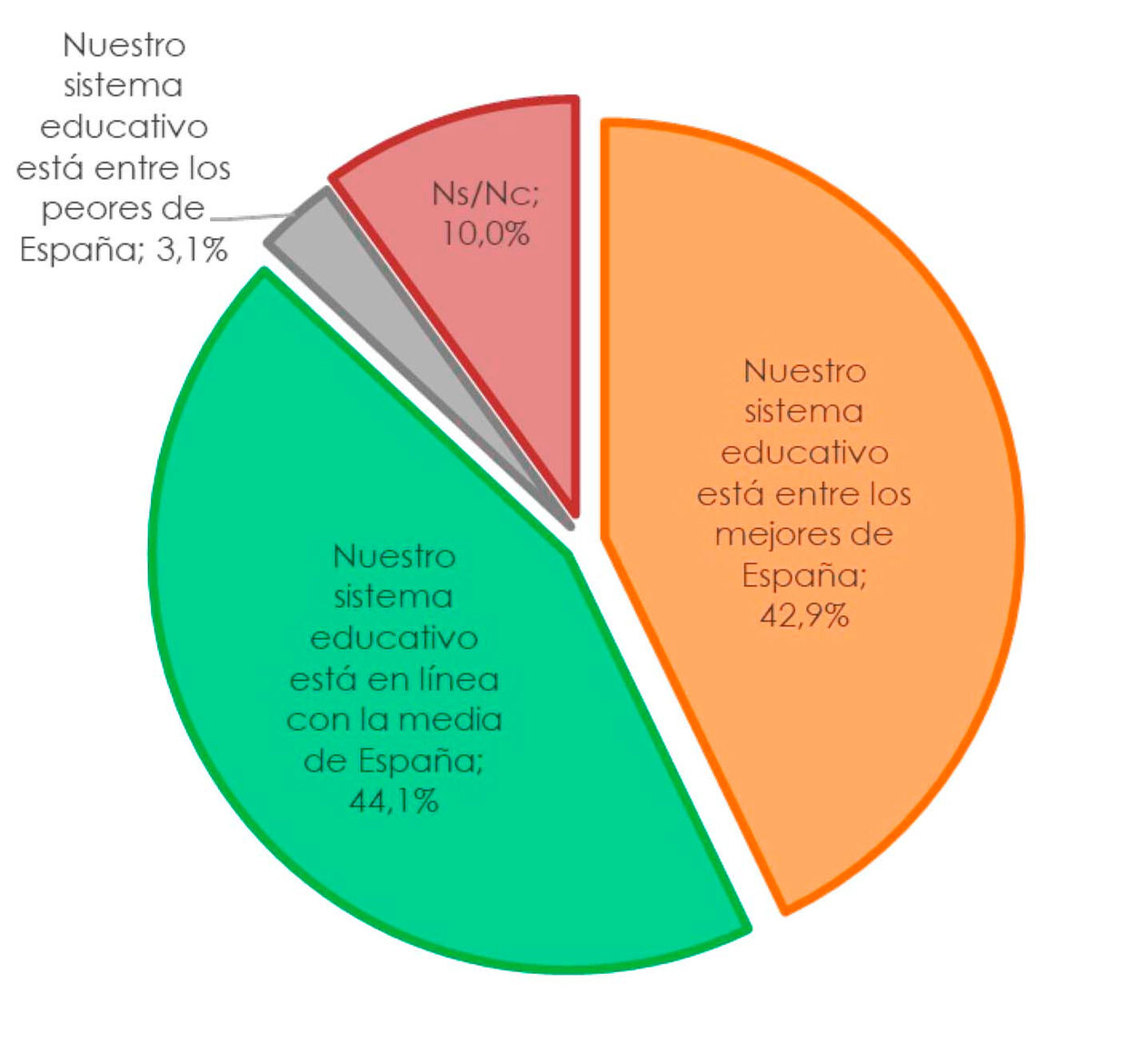 En el polo opuesto, el 3,1% de los encuestados considera que el sistema educativo de la comunidad está entre los peores de España, a la vez que el 10% no sabe o no se pronuncia en este punto.