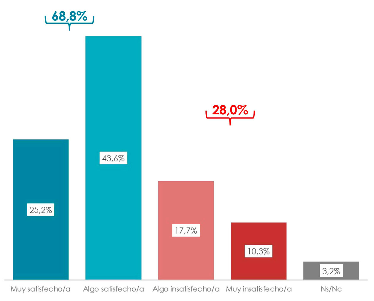 No obstante, el 68,8% de los vallisoletanos dicen estar algo o muy satisfechos con los servicios de salud que han utilizado, mientras que el 28% indica que está algo o muy insatisfecho con los servicios que ellos o su familia han utilizado. De entre las notas positivas, la suma total resulta del 25,2% del ‘Muy satisfecho’ y el 43,6% del ‘Algo satisfecho’.