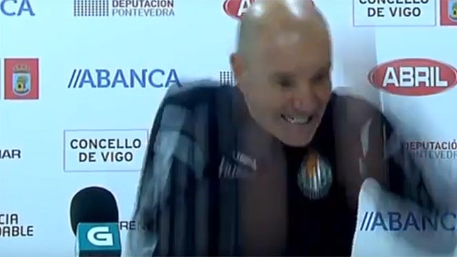 La de la foto es la viva expresión de un enfado. Su protagonista es el entrenador del Real Valladolid B. Discutía Miguel Rivera en sala de prensa con un miembro del cuerpo técnico del Rápido de Bouzas que le llamó sin vergüenza en varias ocasiones. Todo esto después de que el Real Valladolid B firmase las tablas ante el conjunto gallego.
