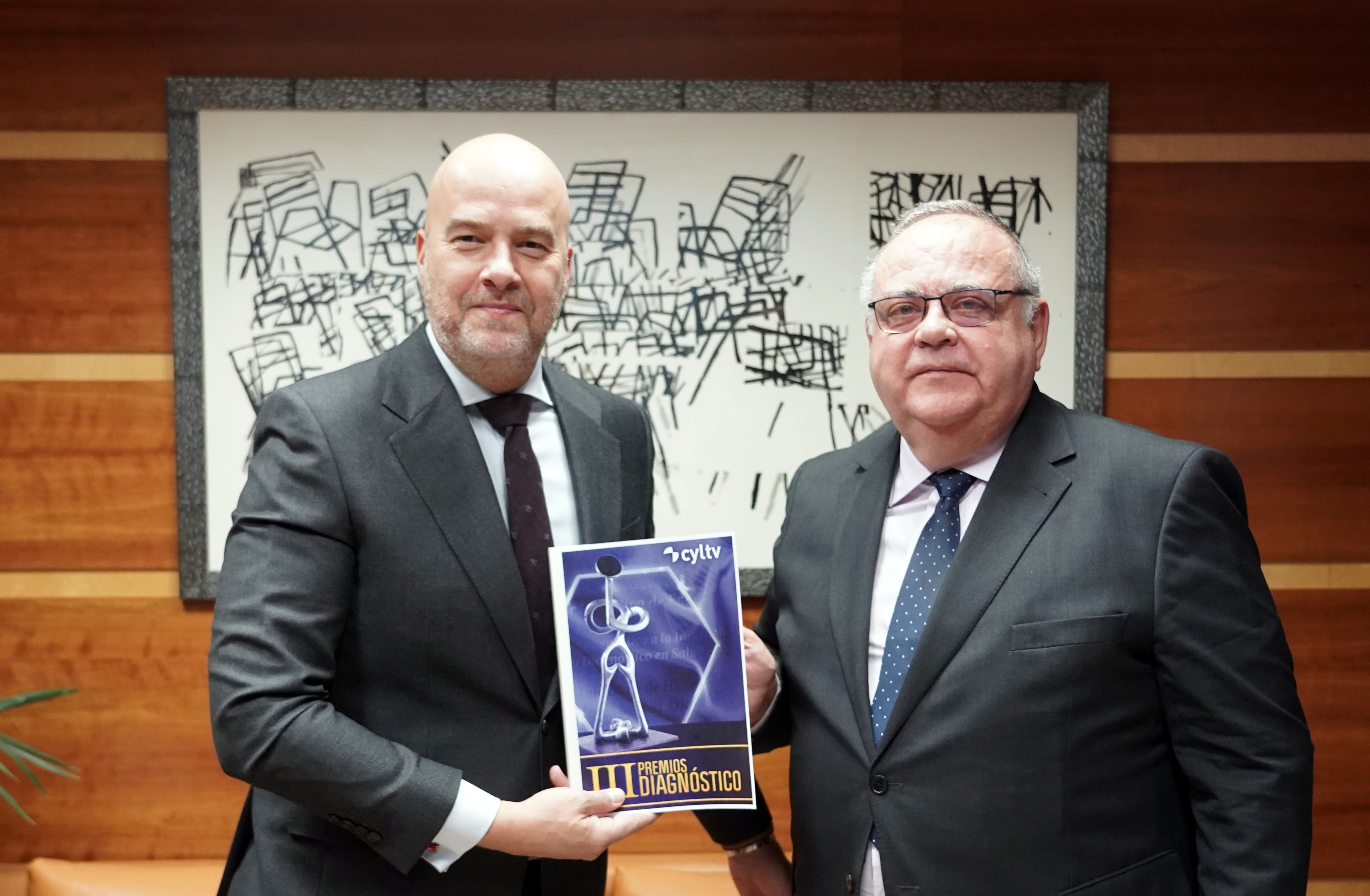 El director general de Castilla y León Televisión, Jorge Losada, ha presentado esta mañana la tercera edición de los Premios Diagnóstico al consejero de Sanidad, Alejandro Vázquez. Con estos galardones la cadena busca un año más reconocer y homenajear la labor de profesionales, empresas o instituciones de la comunidad que trabajan por y para mejorar el campo de la salud y la sanidad. El plazo de presentación de candidaturas está abierto hasta el 16 de noviembre.