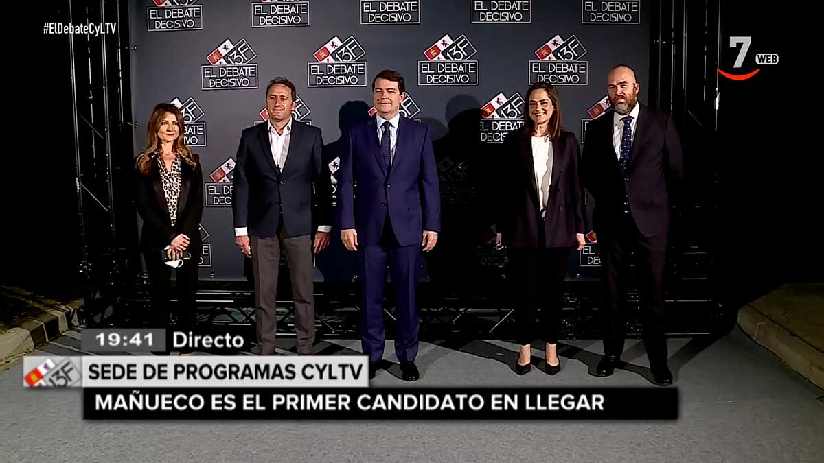 A las 21:00 horas comenzará el debate en el que se verán las caras los candidatos de los tres partidos políticos con grupo parlamentario propio en la última legislatura: Luis Tudanca (PSOE), Alfonso Fernández Mañueco (PP) y Francisco Igea (Ciudadanos). El cara a cara, moderado por los periodistas de CyLTV Alejandra Abad y Antonio Renedo, estará estructurado en 5 bloques que versarán sobre sanidad, servicios sociales y dependencia, economía, infraestructuras y pactos postelectorales.