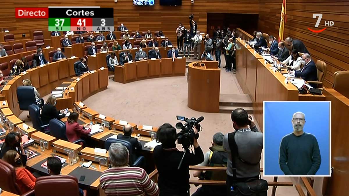Las Cortes de Castilla y León han rechazado este lunes la moción de censura del Grupo Socialista contra el gobierno de Alfonso Fernández Mañueco con 41 votos en contra de PP, Ciudadanos y Vox, frente a los 37 a favor de PSOE y Podemos y las tres abstenciones de UPL, Por Ávila y la parlamentaria no adscrita María Montero, que abandonaba Ciudadanos la pasada semana.