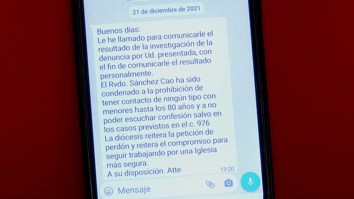 La sentencia del Tribunal de la Rota de la Nunciatura Apostólica condena a Sánchez Cao a la prohibición de tener contacto con menores hasta los 80 años, ahora tiene 68, y a no poder escuchar confesión salvo extremaunción. Para Emiliano es insuficiente y recurrirá. "Lo que queremos es que sea expulsado de la Iglesia, ese señor no tiene los valores para ser un sacerdote". Se siente contento de haber ganado la batalla, pero también "indignado" por las formas de comunicar esta resolución.