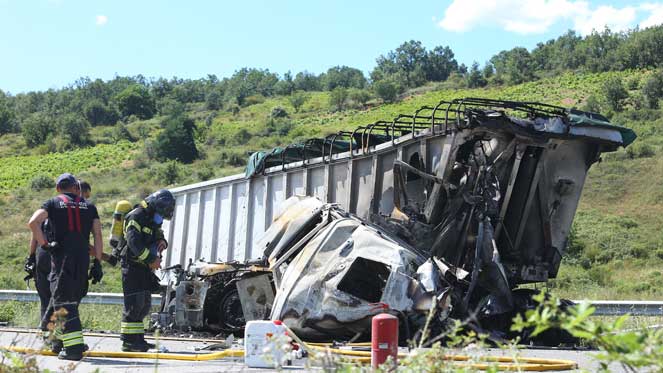 Un varón de unos 40 años de edad resultó herido de gravedad este lunes como consecuencia de la colisión entre el camión que conducía con otro vehículo pesado, cuyo conductor también resultó herido, en el kilómetro 376 de la A-6 a la altura de Almázcara (León), en el término municipal de Congosto, en dirección Benavente.
